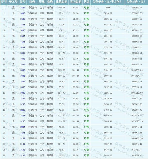 建發曦城菁雅苑(西城時代)8棟準售房源及房價公示
