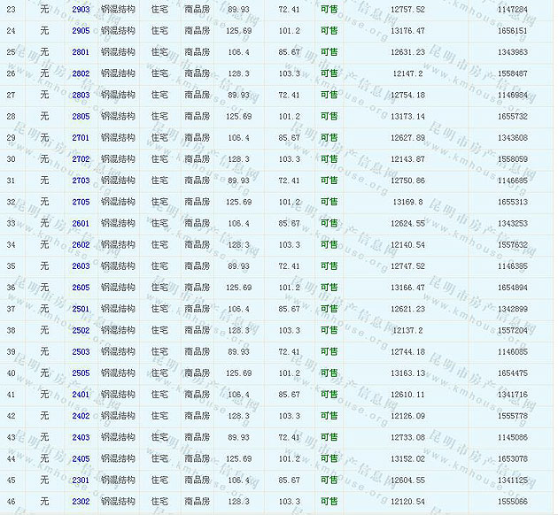 根據云南省物價局關于發布《云南省商品房銷售明碼標價實施細則(試行)》的通知,現將該項目商品住房的準售房源及每套房屋價格向社會公布,房地產開發企業應嚴格按照公布價格,商品房銷售明碼標價實行一套一標。商品房經營者應當對每套商品房按照建筑面具進行明碼標價,否則,房產登記機關不予登記備案。準售房源及房價信息如下: