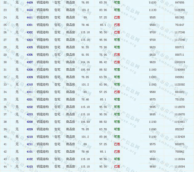 根據(jù)云南省物價(jià)局關(guān)于發(fā)布《云南省商品房銷售明碼標(biāo)價(jià)實(shí)施細(xì)則(試行)》的通知,現(xiàn)將該項(xiàng)目商品住房的準(zhǔn)售房源及每套房屋價(jià)格向社會公布,房地產(chǎn)開發(fā)企業(yè)應(yīng)嚴(yán)格按照公布價(jià)格,商品房銷售明碼標(biāo)價(jià)實(shí)行一套一標(biāo)。商品房經(jīng)營者應(yīng)當(dāng)對每套商品房按照建筑面具進(jìn)行明碼標(biāo)價(jià),否則,房產(chǎn)登記機(jī)關(guān)不予登記備案。準(zhǔn)售房源及房價(jià)信息如下: