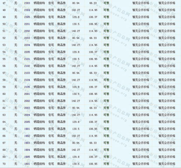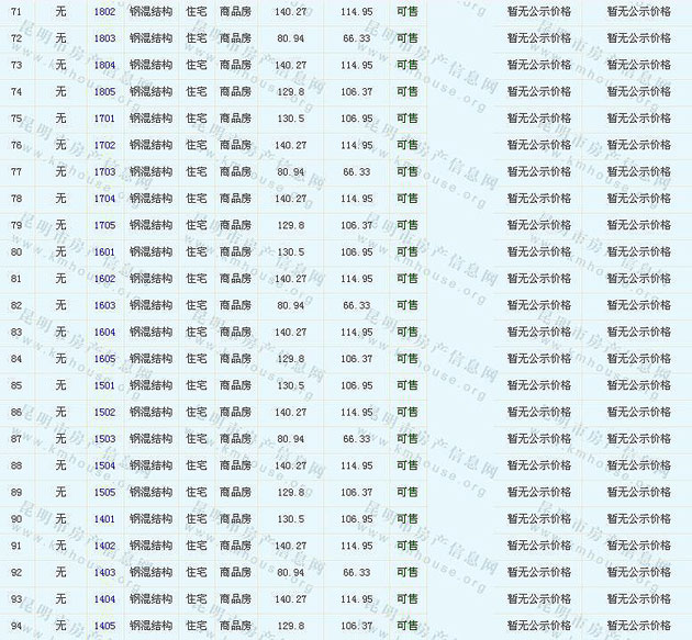 六合天城(A3地塊)商品住房的準(zhǔn)售房源