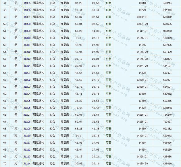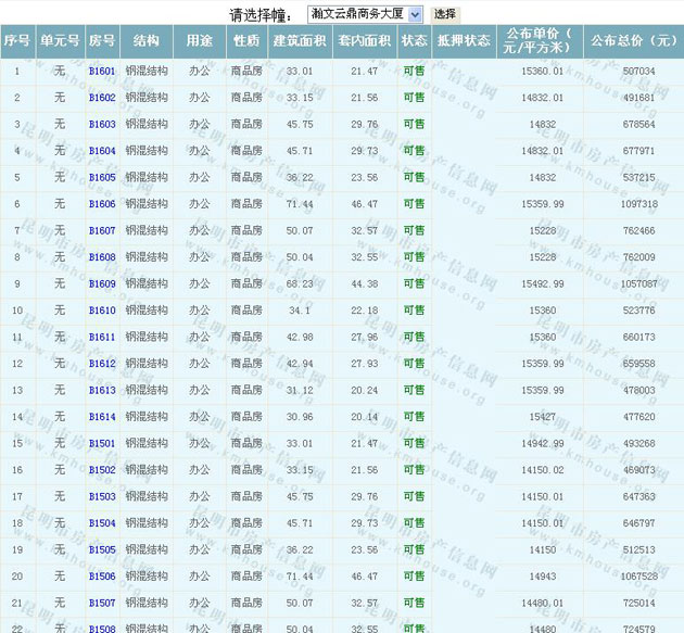 根據云南省物價局關于發布《云南省商品房銷售明碼標價實施細則(試行)》的通知,現將該項目商品住房的準售房源及每套房屋價格向社會公布,房地產開發企業應嚴格按照公布價格,商品房銷售明碼標價實行一套一標。商品房經營者應當對每套商品房按照建筑面具進行明碼標價,否則,房產登記機關不予登記備案。準售房源及房價信息如下: