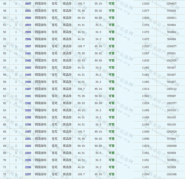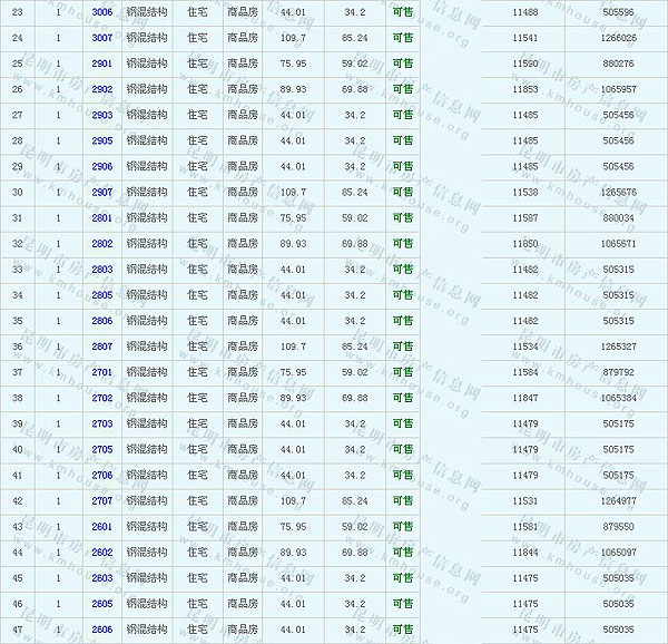 根據云南省物價局關于發布《云南省商品房銷售明碼標價實施細則(試行)》的通知,現將該項目商品住房的準售房源及每套房屋價格向社會公布,房地產開發企業應嚴格按照公布價格,商品房銷售明碼標價實行一套一標。商品房經營者應當對每套商品房按照建筑面具進行明碼標價,否則,房產登記機關不予登記備案。準售房源及房價信息如下: