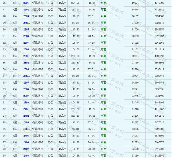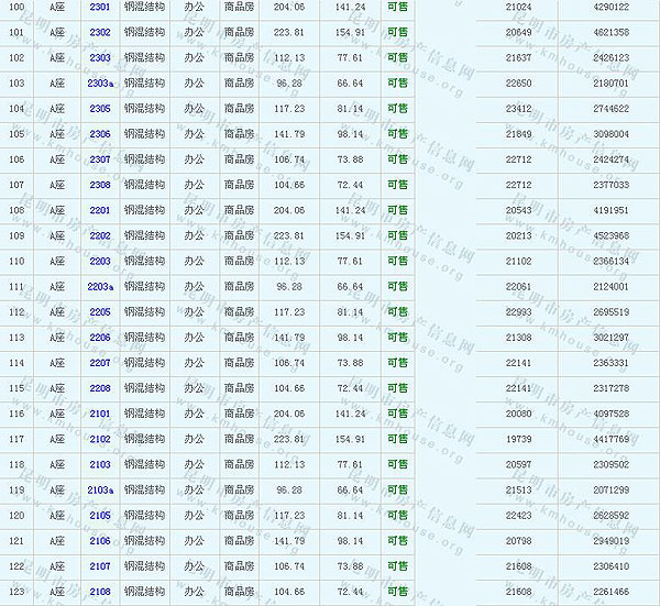 根據云南省物價局關于發布《云南省商品房銷售明碼標價實施細則(試行)》的通知,現將該項目商品住房的準售房源及每套房屋價格向社會公布,房地產開發企業應嚴格按照公布價格,商品房銷售明碼標價實行一套一標。商品房經營者應當對每套商品房按照建筑面具進行明碼標價,否則,房產登記機關不予登記備案。準售房源及房價信息如下: