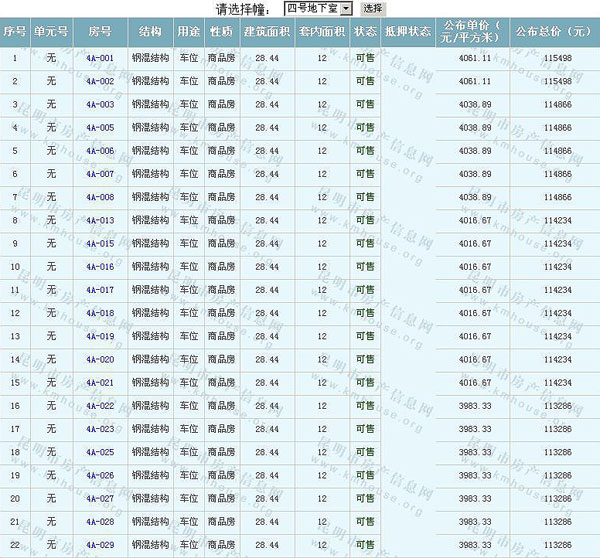昆明玉器城(地塊2)一期四號(hào)地下室準(zhǔn)售房源及房?jī)r(jià)公示