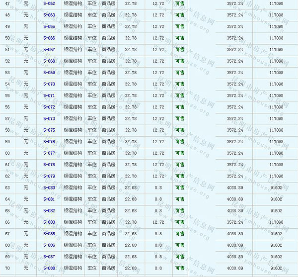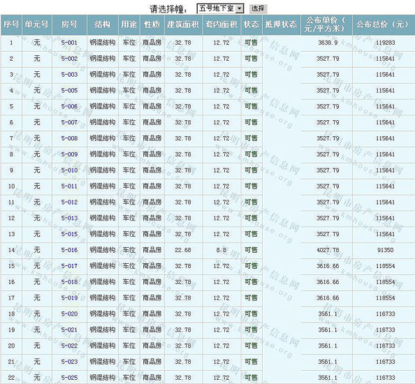 根據(jù)云南省物價局關(guān)于發(fā)布《云南省商品房銷售明碼標(biāo)價實施細(xì)則(試行)》的通知,現(xiàn)將該項目商品住房的準(zhǔn)售房源及每套房屋價格向社會公布,房地產(chǎn)開發(fā)企業(yè)應(yīng)嚴(yán)格按照公布價格,商品房銷售明碼標(biāo)價實行一套一標(biāo)。商品房經(jīng)營者應(yīng)當(dāng)對每套商品房按照建筑面具進(jìn)行明碼標(biāo)價,否則,房產(chǎn)登記機關(guān)不予登記備案。準(zhǔn)售房源及房價信息如下: