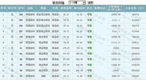 根據(jù)云南省物價(jià)局關(guān)于發(fā)布《云南省商品房銷售明碼標(biāo)價(jià)實(shí)施細(xì)則(試行)》的通知,現(xiàn)將該項(xiàng)目商品住房的準(zhǔn)售房源及每套房屋價(jià)格向社會公布,房地產(chǎn)開發(fā)企業(yè)應(yīng)嚴(yán)格按照公布價(jià)格,商品房銷售明碼標(biāo)價(jià)實(shí)行一套一標(biāo)。商品房經(jīng)營者應(yīng)當(dāng)對每套商品房按照建筑面具進(jìn)行明碼標(biāo)價(jià),否則,房產(chǎn)登記機(jī)關(guān)不予登記備案。準(zhǔn)售房源及房價(jià)信息如下: