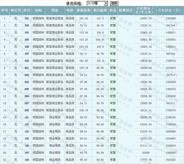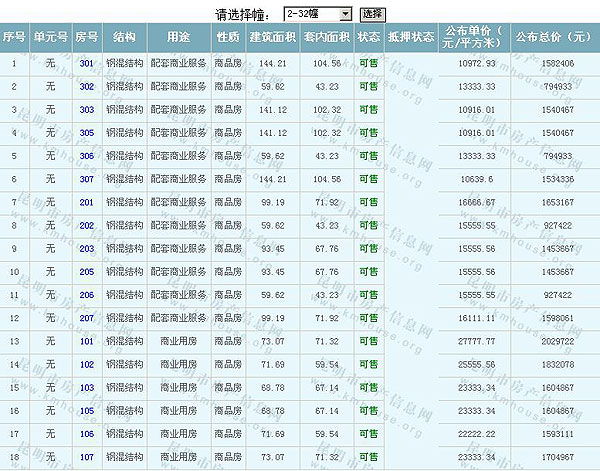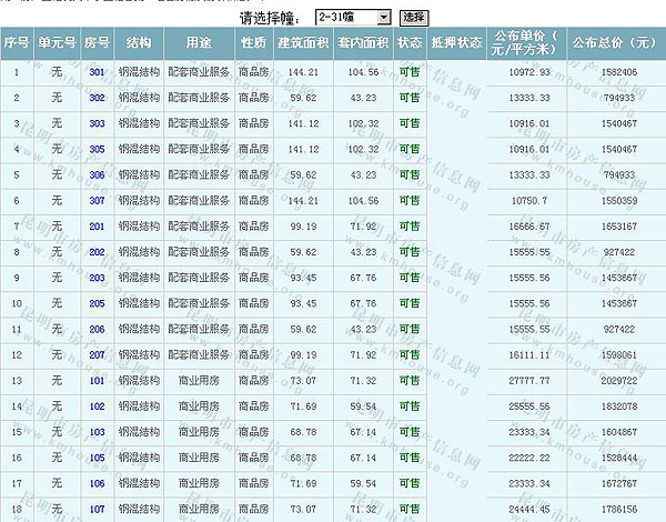 根據云南省物價局關于發布《云南省商品房銷售明碼標價實施細則(試行)》的通知,現將該項目商品住房的準售房源及每套房屋價格向社會公布,房地產開發企業應嚴格按照公布價格,商品房銷售明碼標價實行一套一標。商品房經營者應當對每套商品房按照建筑面具進行明碼標價,否則,房產登記機關不予登記備案。準售房源及房價信息如下: