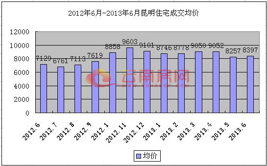 2013年上半年昆明住宅成交均價8713元與去年相比上漲16.72%