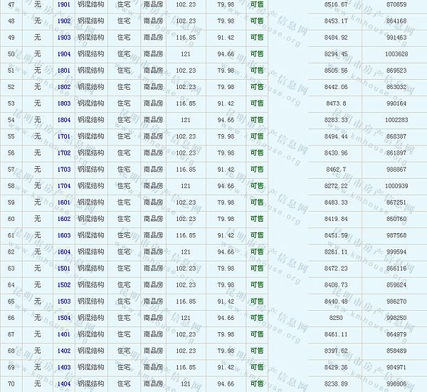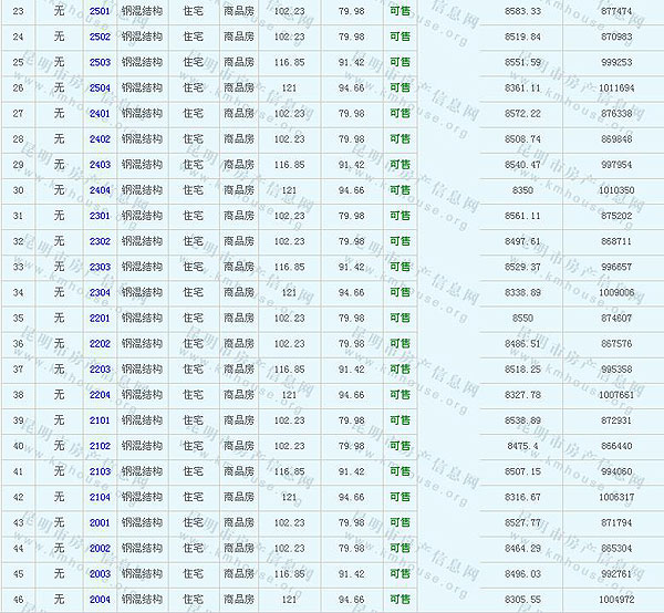 根據云南省物價局關于發布《云南省商品房銷售明碼標價實施細則(試行)》的通知,現將該項目商品住房的準售房源及每套房屋價格向社會公布,房地產開發企業應嚴格按照公布價格,商品房銷售明碼標價實行一套一標。商品房經營者應當對每套商品房按照建筑面具進行明碼標價,否則,房產登記機關不予登記備案。準售房源及房價信息如下: