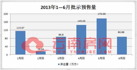 2013年上半年昆明預售證發放情況報告:62項目627萬方獲準售 同比上漲19.78%
