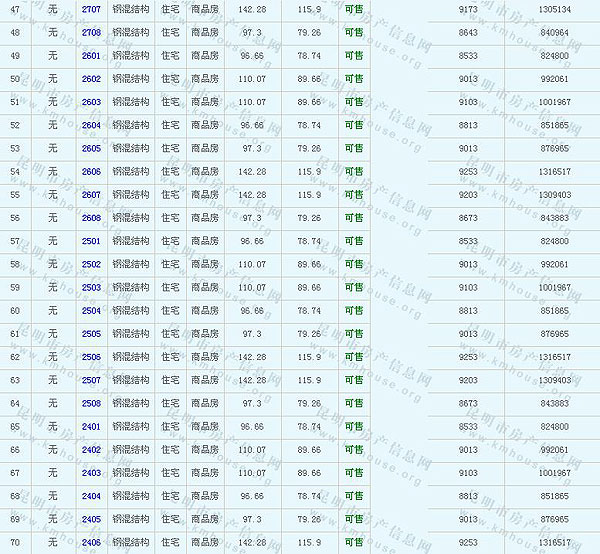 根據云南省物價局關于發布《云南省商品房銷售明碼標價實施細則(試行)》的通知,現將該項目商品住房的準售房源及每套房屋價格向社會公布,房地產開發企業應嚴格按照公布價格,商品房銷售明碼標價實行一套一標。商品房經營者應當對每套商品房按照建筑面具進行明碼標價,否則,房產登記機關不予登記備案。準售房源及房價信息如下: