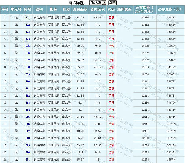 根據云南省物價局關于發布《云南省商品房銷售明碼標價實施細則(試行)》的通知,現將該項目商品住房的準售房源及每套房屋價格向社會公布,房地產開發企業應嚴格按照公布價格,商品房銷售明碼標價實行一套一標。商品房經營者應當對每套商品房按照建筑面具進行明碼標價,否則,房產登記機關不予登記備案。準售房源及房價信息如下: