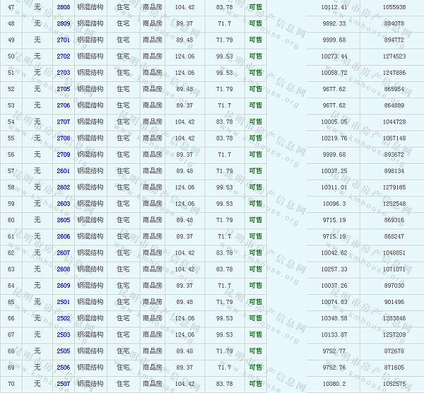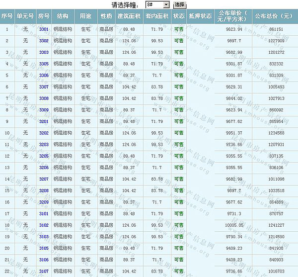 金色領域(金域國際)A3-2地塊8#準售房源及房價公示