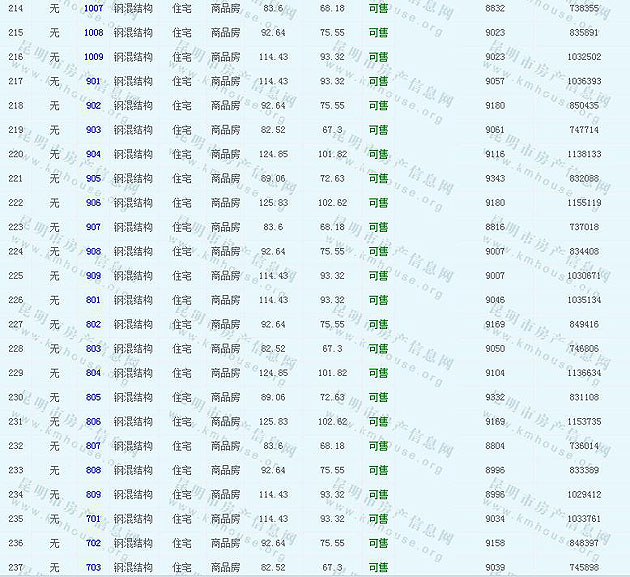 天宇瀾山(天宇桃園)1號地塊準售房源及房價公示