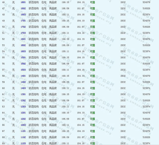 根據云南省物價局關于發布《云南省商品房銷售明碼標價實施細則(試行)》的通知,現將該項目商品住房的準售房源及每套房屋價格向社會公布,房地產開發企業應嚴格按照公布價格,商品房銷售明碼標價實行一套一標。商品房經營者應當對每套商品房按照建筑面具進行明碼標價,否則,房產登記機關不予登記備案。準售房源及房價信息如下: