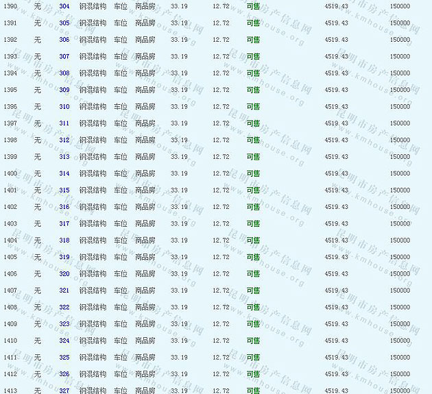 根據(jù)云南省物價局關(guān)于發(fā)布《云南省商品房銷售明碼標(biāo)價實施細(xì)則(試行)》的通知,現(xiàn)將該項目商品住房的準(zhǔn)售房源及每套房屋價格向社會公布,房地產(chǎn)開發(fā)企業(yè)應(yīng)嚴(yán)格按照公布價格,商品房銷售明碼標(biāo)價實行一套一標(biāo)。商品房經(jīng)營者應(yīng)當(dāng)對每套商品房按照建筑面具進(jìn)行明碼標(biāo)價,否則,房產(chǎn)登記機(jī)關(guān)不予登記備案。準(zhǔn)售房源及房價信息如下: