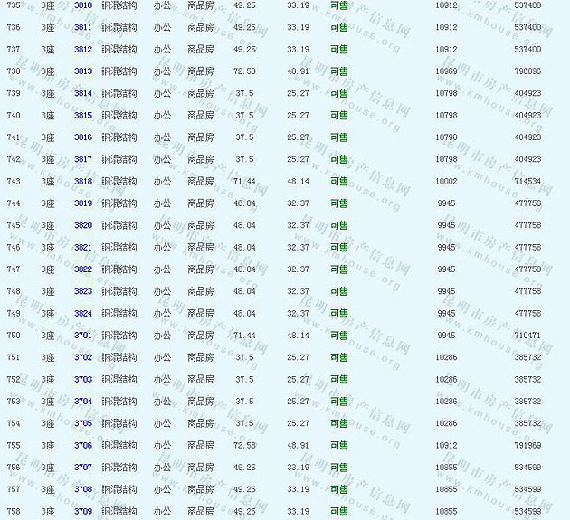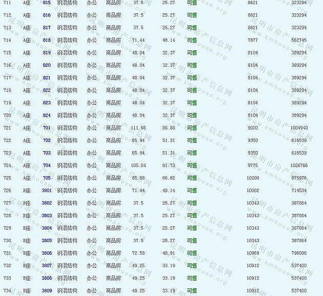 根據云南省物價局關于發布《云南省商品房銷售明碼標價實施細則(試行)》的通知,現將該項目商品住房的準售房源及每套房屋價格向社會公布,房地產開發企業應嚴格按照公布價格,商品房銷售明碼標價實行一套一標。商品房經營者應當對每套商品房按照建筑面具進行明碼標價,否則,房產登記機關不予登記備案。準售房源及房價信息如下: