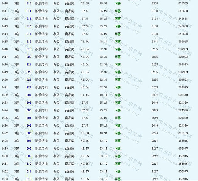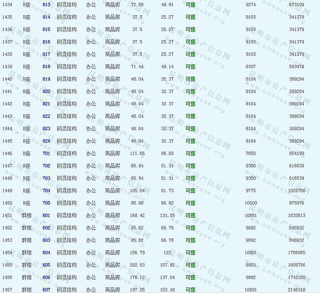 根據云南省物價局關于發布《云南省商品房銷售明碼標價實施細則(試行)》的通知,現將該項目商品住房的準售房源及每套房屋價格向社會公布,房地產開發企業應嚴格按照公布價格,商品房銷售明碼標價實行一套一標。商品房經營者應當對每套商品房按照建筑面具進行明碼標價,否則,房產登記機關不予登記備案。準售房源及房價信息如下: