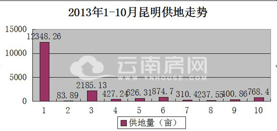 截止到2013年9月27日,據昆明市國土資源局網站信息顯示,10月份,昆明主城及呈貢計劃出讓土地768畝,交易總起價4.5億元。其中,旅游新區尋甸倘甸鎮大量土地入市,昆明主城區暫無土地供應成為本月最大特點。