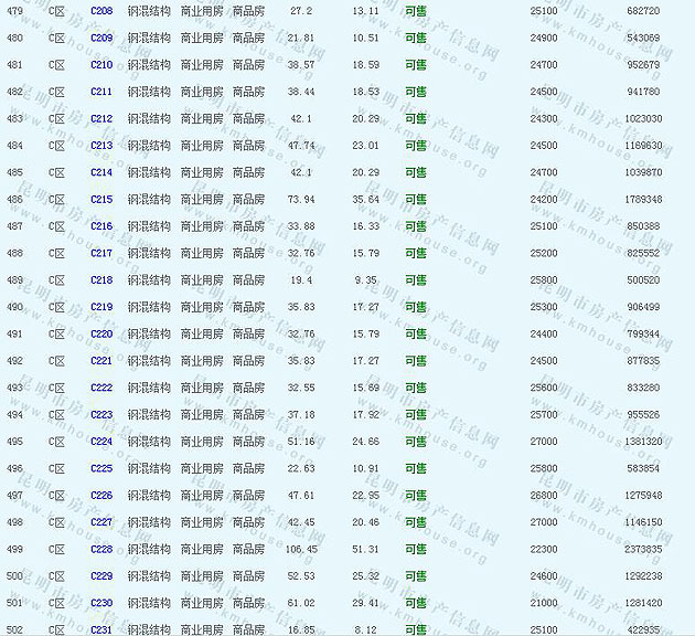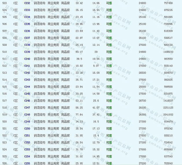 根據(jù)云南省物價局關于發(fā)布《云南省商品房銷售明碼標價實施細則(試行)》的通知,現(xiàn)將該項目商品住房的準售房源及每套房屋價格向社會公布,房地產開發(fā)企業(yè)應嚴格按照公布價格,商品房銷售明碼標價實行一套一標。商品房經營者應當對每套商品房按照建筑面具進行明碼標價,否則,房產登記機關不予登記備案。準售房源及房價信息如下: