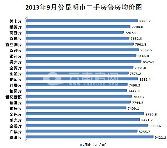售房方面,昆明市2013年9月份二手房售房成交均價(jià)約為8066.43元/㎡,環(huán)比2013年8月(成交均價(jià)8068元/㎡)下降0.02%;