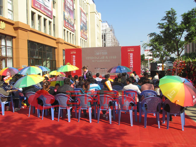 9時30分,雖說是秋日的早晨,但是太陽還是略顯毒辣,現場的工作人員很貼心的為大家發放遮陽傘。大家在烈日下還是耐心等待著活動的開始,現場座無虛席。9是50分,隨著音樂緩緩響起,身著火紅盛裝的演員為大家表演了激情熱辣的開場水鼓舞,現場氣氛升溫。開場舞之后,主持人宣布活動的開始,并且為大家簡單的介紹了萬象城市領域項目的基本情況。