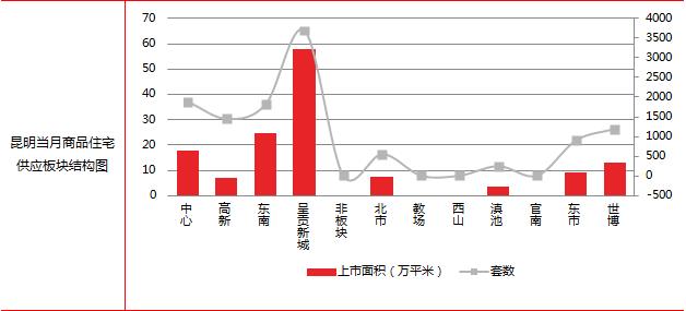 本月推案項目有所下降,主要分布在官渡區和盤龍區。本月住宅市場批售比為1.77,市場仍呈現供大于求的態勢,市場存量大幅增長。