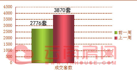 成交數(shù)據(jù)方面,上周昆明樓市成交商品房3870套,比前一周2776套多了1094套,環(huán)比上升39.4%,上周昆明樓市成交商品房總面積為287734.44㎡,較前一周211970.41㎡多了75764.03㎡,環(huán)比增長35.7%。和前一周相比,成交量和成交面積較前一周大幅度上漲。從整體情況來看,上一周的樓市異常火爆,成交套數(shù)和成交面積都創(chuàng)下了今年樓市交易的新高。