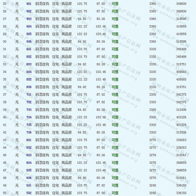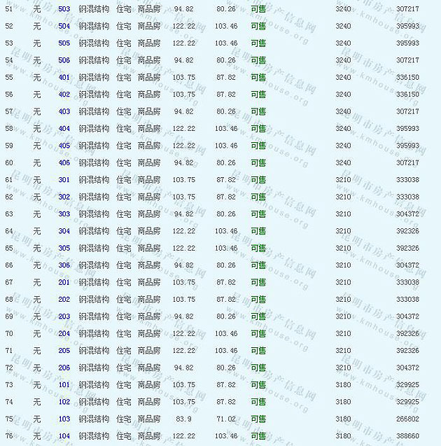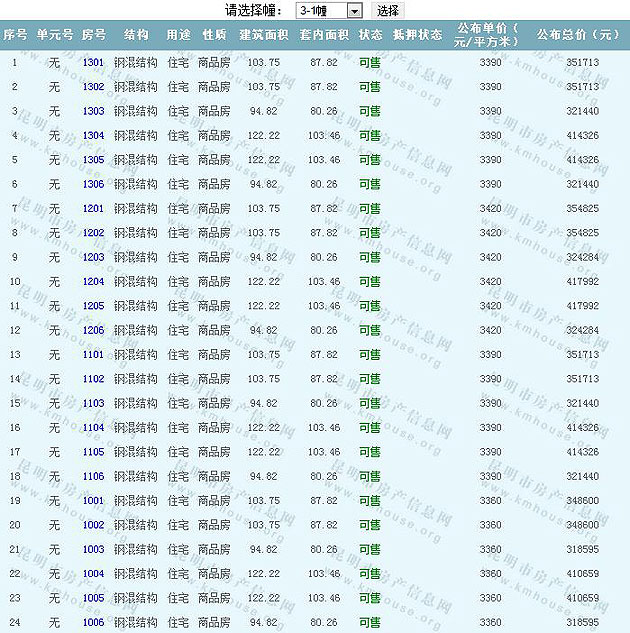根據云南省物價局關于發布《云南省商品房銷售明碼標價實施細則(試行)》的通知,現將該項目商品住房的準售房源及每套房屋價格向社會公布,房地產開發企業應嚴格按照公布價格,商品房銷售明碼標價實行一套一標。商品房經營者應當對每套商品房按照建筑面具進行明碼標價,否則,房產登記機關不予登記備案。準售房源及房價信息如下: