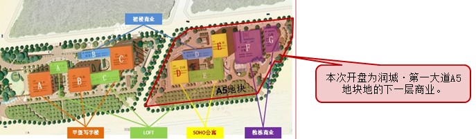 潤城第一大道,由3棟甲級寫字樓、2棟SOHO、3棟LOFT、2棟獨棟商業、2棟裙樓商業所構成。