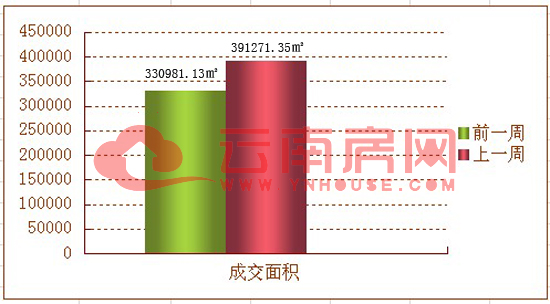 在成交數據方面,根據昆明市房產信息網統計數據顯示,從2013年11月04日至2013年11月10日,一周內昆明主城區及呈貢新城共成交各類商品房4541套,較前一周4634套減少了93套,環比下跌了2%;但在成交面積方面,環比有所上升,上周昆明樓市成交商品房總面積為391271.35㎡,較前一周330981.13㎡增加了60290.22㎡,環比上漲了18.22%。