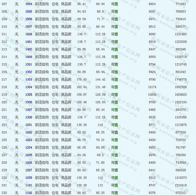 花香四季(二期)Ⅰ準(zhǔn)售房源及房價(jià)公示
