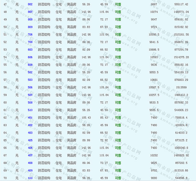 根據云南省物價局關于發布《云南省商品房銷售明碼標價實施細則(試行)》的通知,現將該項目商品住房的準售房源及每套房屋價格向社會公布,房地產開發企業應嚴格按照公布價格,商品房銷售明碼標價實行一套一標。商品房經營者應當對每套商品房按照建筑面具進行明碼標價,否則,房產登記機關不予登記備案。準售房源及房價信息如下: