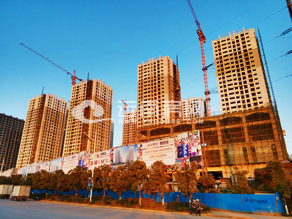 云南房網小編近日踩盤得知,位于安寧新區寧湖西畔的寧湖9號·萬國城項目,目前8棟高層建筑及一棟純商業樓已完全封頂。據項目置業顧問介紹,“目前8棟建筑的外立面第一次外裱工作剛剛完成,接下來還將再粉刷一道外墻。而4#獨立商業現也已封頂!睋【帉嵉乜吹,獨立商業位于項目8棟住宅最前方,臨安八線道路最近,目前雖已封頂,但仍拉著綠網,在進行拆除綠網前最后的收尾工作。而8棟東西朝向,總層高26層的高層建筑,22—26層外墻已經刷白,其余樓層目前外立面為淡棕色,待第二次著色之后,淡棕色會呈現出沙盤中體現的灰褐色。沙盤中看到的靠近每棟樓中間的窗戶邊緣會刷成白色小塊狀,目前還暫時不能看到。項目總體有1790戶,目前大約還剩500戶高層在售,均價4800元/平米,一次性付款可享2%優惠,按揭享1%優惠,總體預計2014年年底交房。