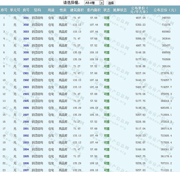 廣福城A9-11幢準(zhǔn)售房源及房價公示(一)