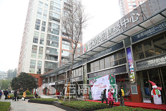 因為臨近圣誕節,售樓部大廳里擺放著裝飾美觀的圣誕樹還有圣誕老人,布置的很是溫馨,為整個大廳增添了一股暖意,統一著黑色制服的置業顧問們坐在前臺,當有到訪者來咨詢問題,他們便熱情接待。當然,我們的看房團團友也受到了工作人員們的熱情接待。