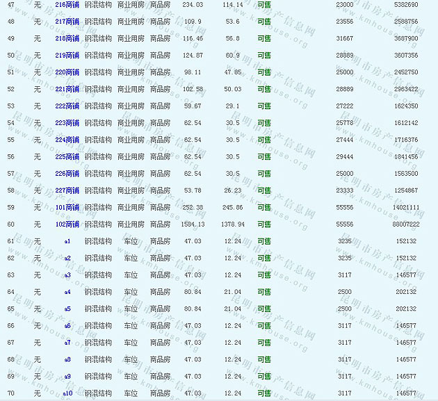 根據(jù)云南省物價局關(guān)于發(fā)布《云南省商品房銷售明碼標(biāo)價實(shí)施細(xì)則(試行)》的通知,現(xiàn)將該項目商品住房的準(zhǔn)售房源及每套房屋價格向社會公布,房地產(chǎn)開發(fā)企業(yè)應(yīng)嚴(yán)格按照公布價格,商品房銷售明碼標(biāo)價實(shí)行一套一標(biāo)。商品房經(jīng)營者應(yīng)當(dāng)對每套商品房按照建筑面具進(jìn)行明碼標(biāo)價,否則,房產(chǎn)登記機(jī)關(guān)不予登記備案。準(zhǔn)售房源及房價信息如下: