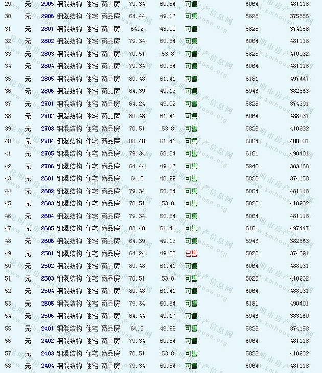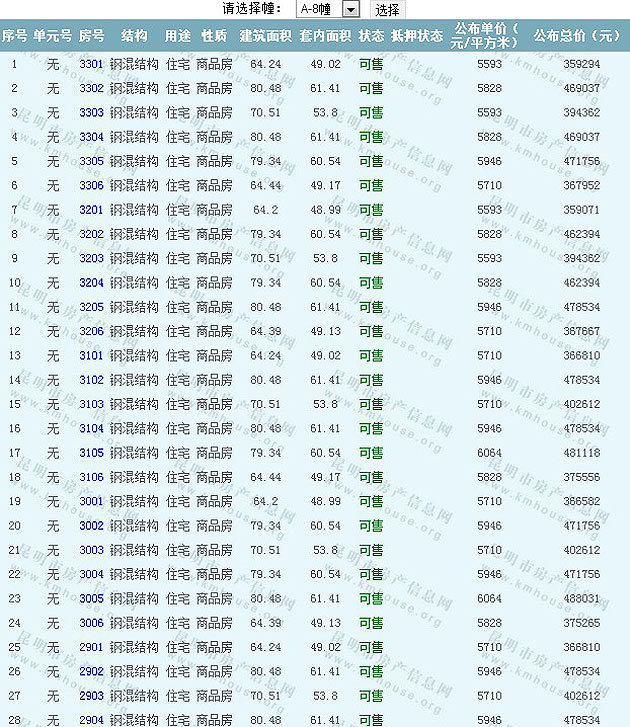 根據(jù)云南省物價(jià)局關(guān)于發(fā)布《云南省商品房銷售明碼標(biāo)價(jià)實(shí)施細(xì)則(試行)》的通知,現(xiàn)將該項(xiàng)目商品住房的準(zhǔn)售房源及每套房屋價(jià)格向社會(huì)公布,房地產(chǎn)開(kāi)發(fā)企業(yè)應(yīng)嚴(yán)格按照公布價(jià)格,商品房銷售明碼標(biāo)價(jià)實(shí)行一套一標(biāo)。商品房經(jīng)營(yíng)者應(yīng)當(dāng)對(duì)每套商品房按照建筑面具進(jìn)行明碼標(biāo)價(jià),否則,房產(chǎn)登記機(jī)關(guān)不予登記備案。準(zhǔn)售房源及房?jī)r(jià)信息如下: