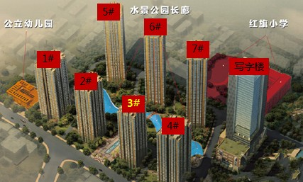 項(xiàng)目規(guī)劃:項(xiàng)目建筑包含6棟高層住宅,1棟寫(xiě)字樓及部分底商,將品質(zhì)住宅、商務(wù)辦公、名師教育