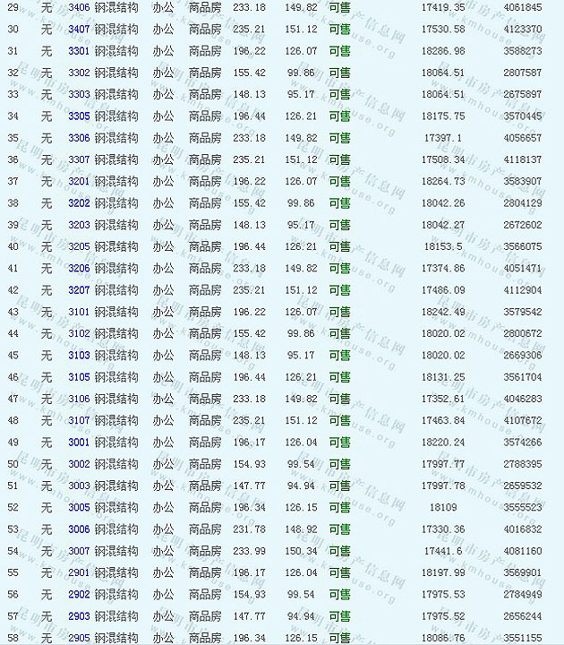 根據云南省物價局關于發布《云南省商品房銷售明碼標價實施細則(試行)》的通知,現將該項目商品住房的準售房源及每套房屋價格向社會公布,房地產開發企業應嚴格按照公布價格,商品房銷售明碼標價實行一套一標。商品房經營者應當對每套商品房按照建筑面具進行明碼標價,否則,房產登記機關不予登記備案。準售房源及房價信息如下: