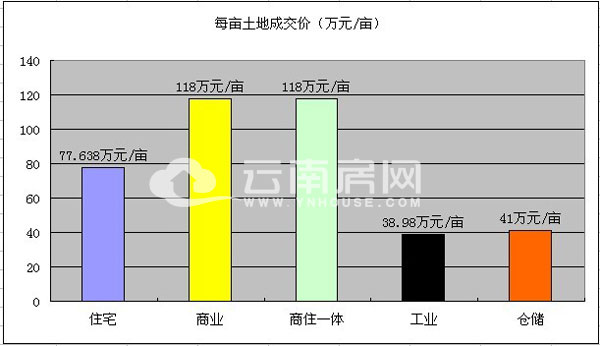 據云南房網統計資料顯示,2012年昆明主城區土地成交均價約合182萬元/畝,其中住宅平均成交價為266萬元/畝,商業用地為198萬元/畝,商住一體用地為450萬元/畝,工業用地為26萬元/畝,倉儲用地為34萬元/畝。而呈貢新區2013年每畝土地平均成交價為111.88萬元/畝,每畝土地成交價比主城低了近70萬元;呈貢2013年住宅用地平均成交價為118萬元,為主城住宅用地成交價一半不到;呈貢2013年純商業用地每畝土地價格為125.77萬元,比主城區商業土地價格低70萬元/畝左右;呈貢2013年商住一體用地價格為131.54萬元/畝,比主城低了318.46萬元/畝。