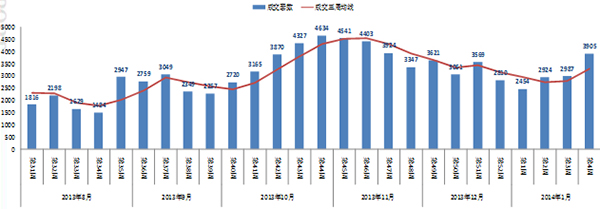 昆明住宅市場周度成交數量走勢