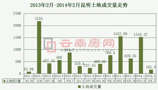 2013年2月-2014年2月昆明土地成交走勢