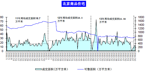 注:北京商品住宅周度走勢圖2013年第14周由于暫停網(wǎng)簽數(shù)據(jù)缺失