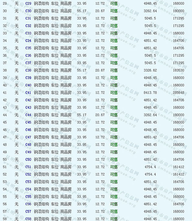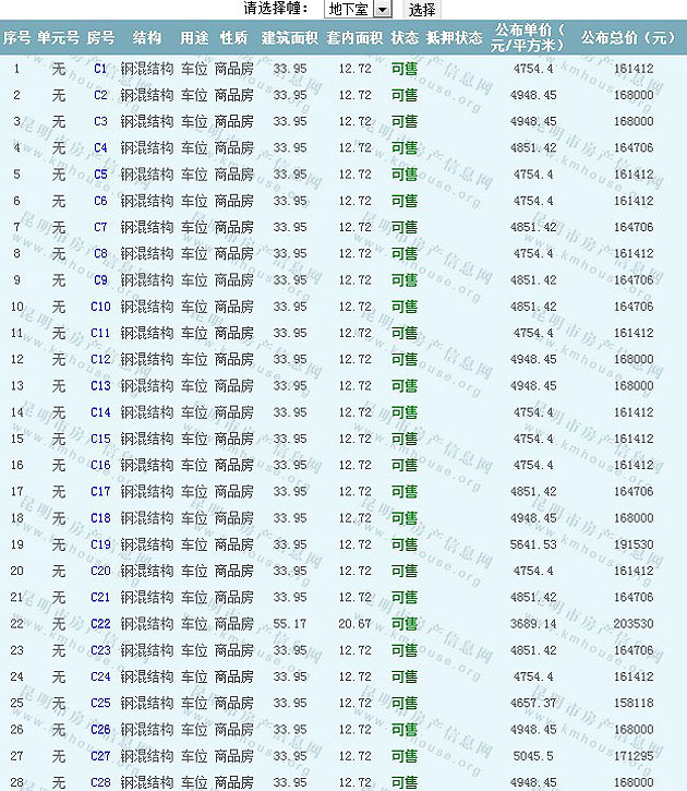 根據(jù)云南省物價局關(guān)于發(fā)布《云南省商品房銷售明碼標價實施細則(試行)》的通知,現(xiàn)將該項目商品住房的準售房源及每套房屋價格向社會公布,房地產(chǎn)開發(fā)企業(yè)應(yīng)嚴格按照公布價格,商品房銷售明碼標價實行一套一標。商品房經(jīng)營者應(yīng)當對每套商品房按照建筑面具進行明碼標價,否則,房產(chǎn)登記機關(guān)不予登記備案。準售房源及房價信息如下: