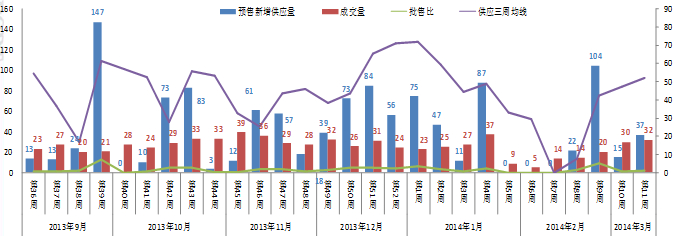 本周市場新增供應36.78萬方,成交面積31.76萬方,批售比為1.16。