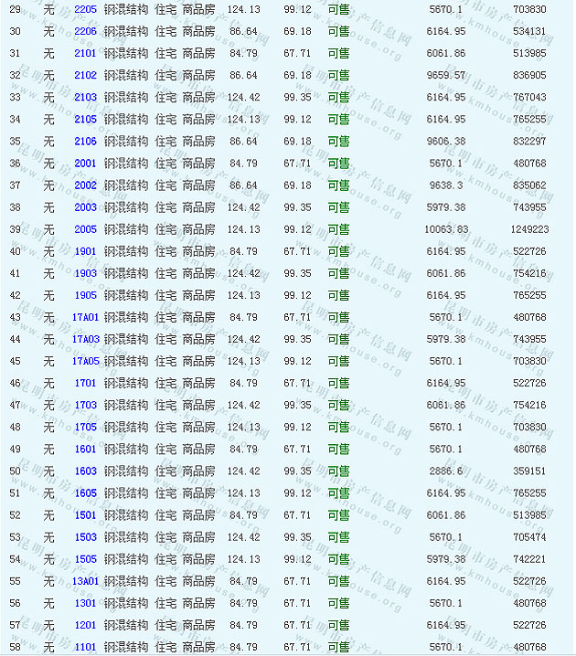根據(jù)云南省物價局關(guān)于發(fā)布《云南省商品房銷售明碼標價實施細則(試行)》的通知,現(xiàn)將該項目商品住房的準售房源及每套房屋價格向社會公布,房地產(chǎn)開發(fā)企業(yè)應嚴格按照公布價格,商品房銷售明碼標價實行一套一標。商品房經(jīng)營者應當對每套商品房按照建筑面具進行明碼標價,否則,房產(chǎn)登記機關(guān)不予登記備案。準售房源及房價信息如下: