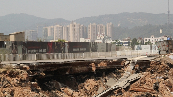 從工地可以看到,道路的地基發(fā)生了塌陷