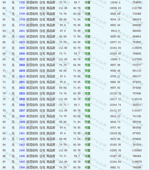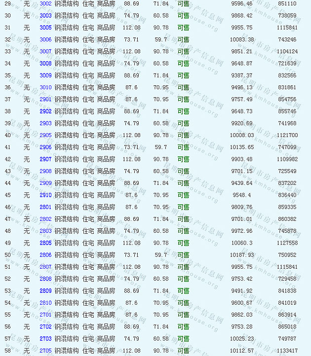 根據云南省物價局關于發布《云南省商品房銷售明碼標價實施細則(試行)》的通知,現將該項目商品住房的準售房源及每套房屋價格向社會公布,房地產開發企業應嚴格按照公布價格,商品房銷售明碼標價實行一套一標。商品房經營者應當對每套商品房按照建筑面具進行明碼標價,否則,房產登記機關不予登記備案。準售房源及房價信息如下: