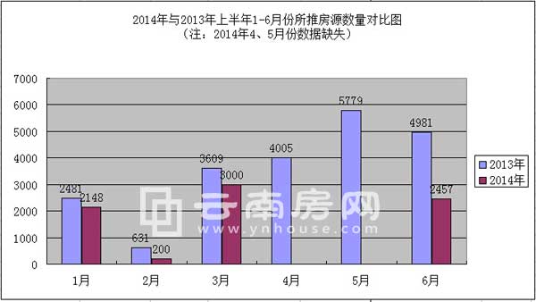 2014年與2013年上半年1-6月份所推房源數(shù)量對比圖